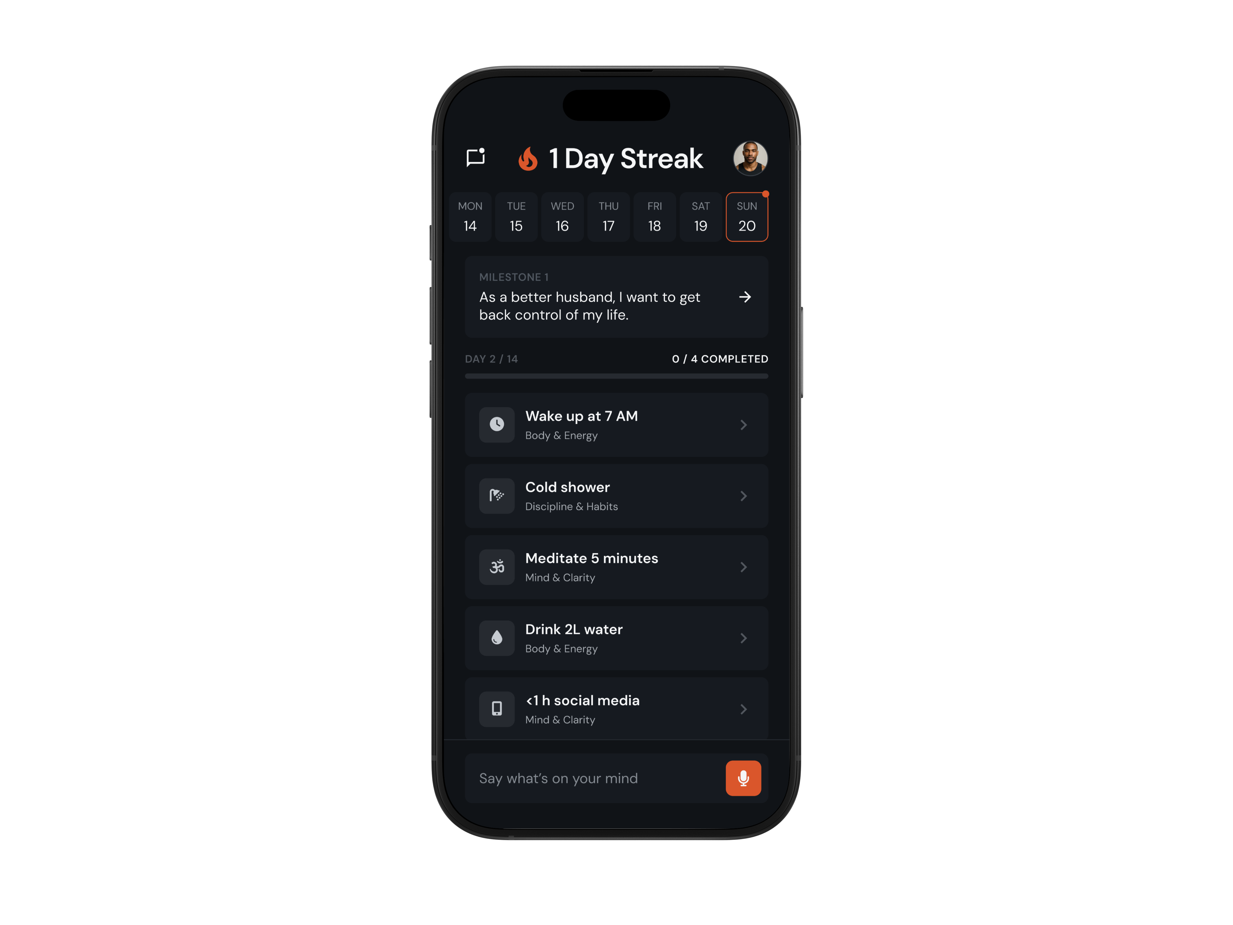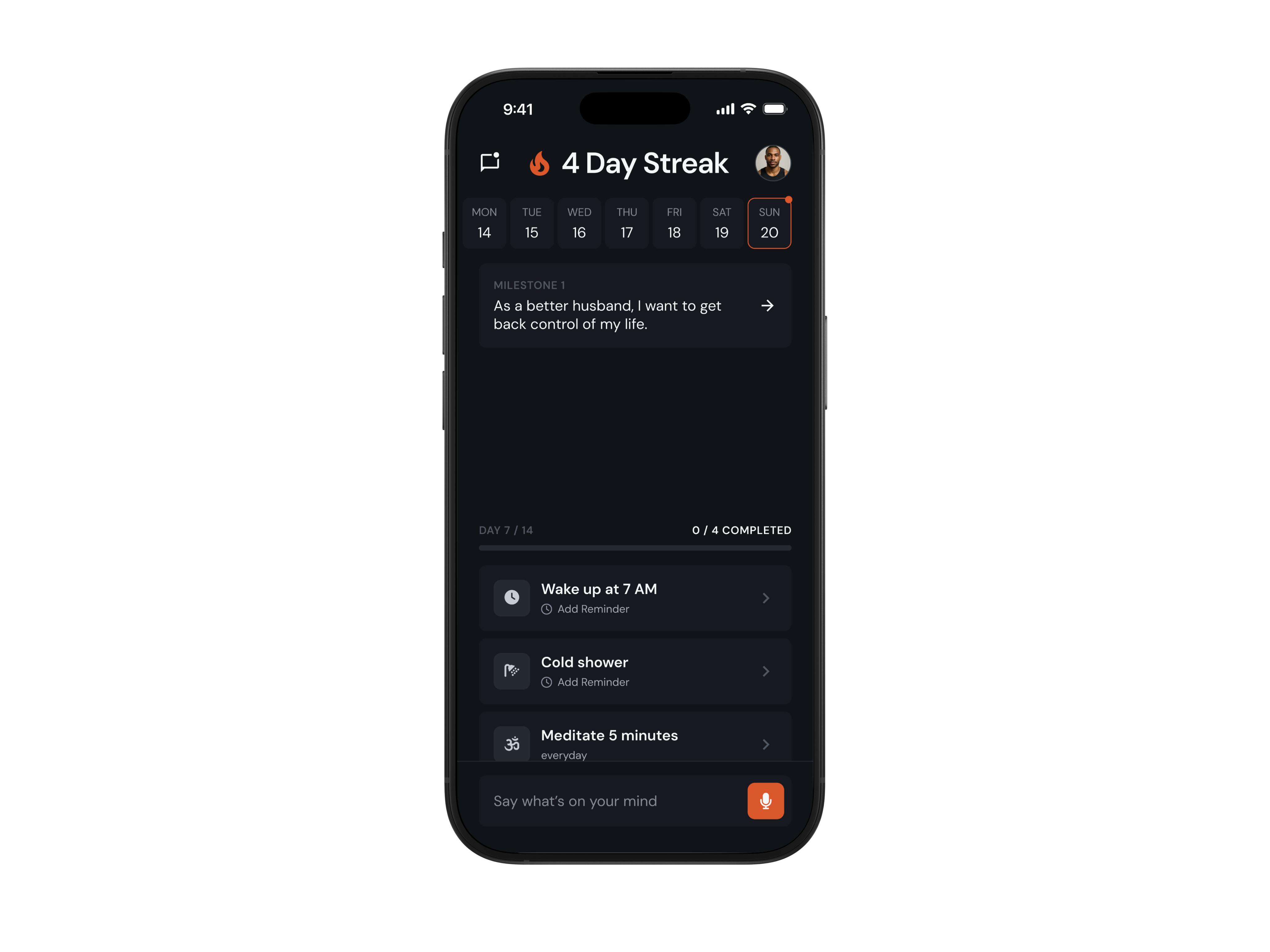 Day 4 of the streak, you're building momentum here. How'd you sleep? Ready to keep it going?