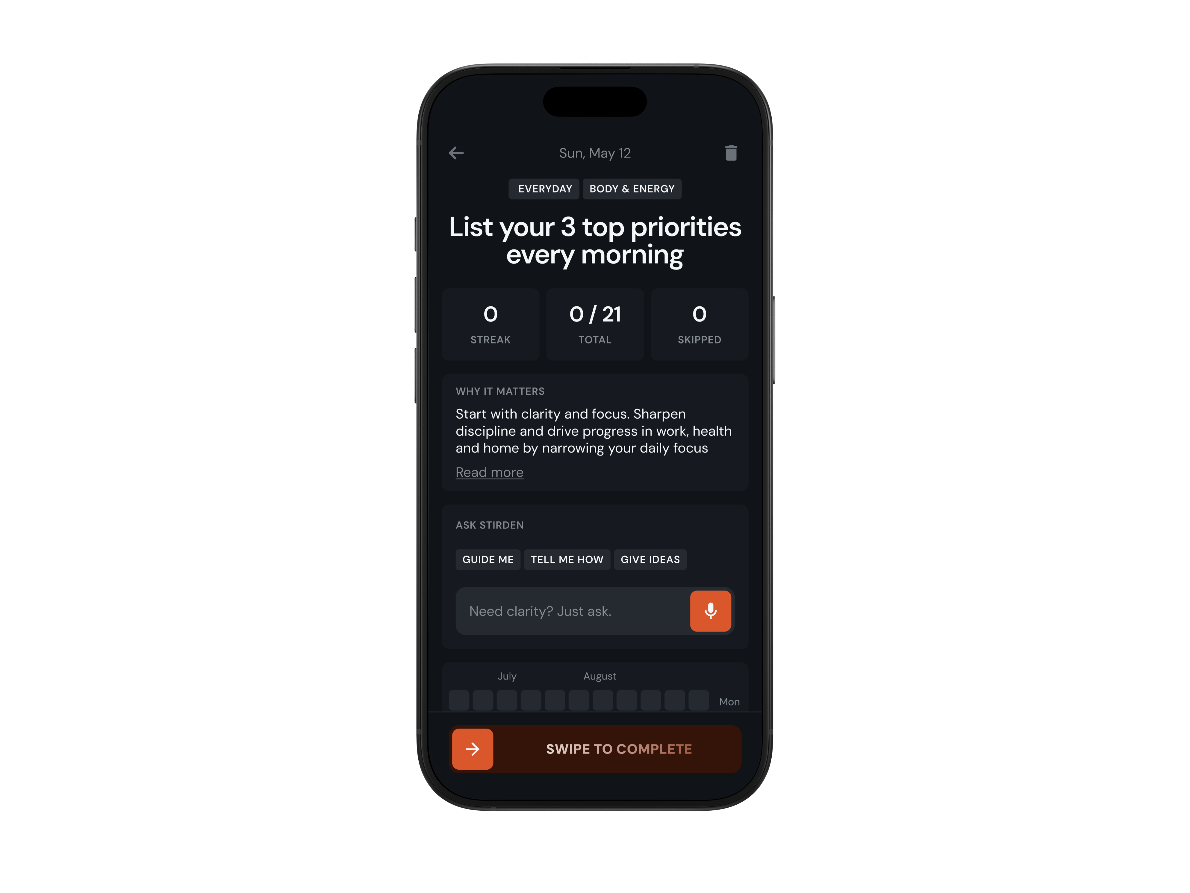 Skipped your routine three days in a row? Your mentor connects the dots. The patterns you miss - Stirden sees.
